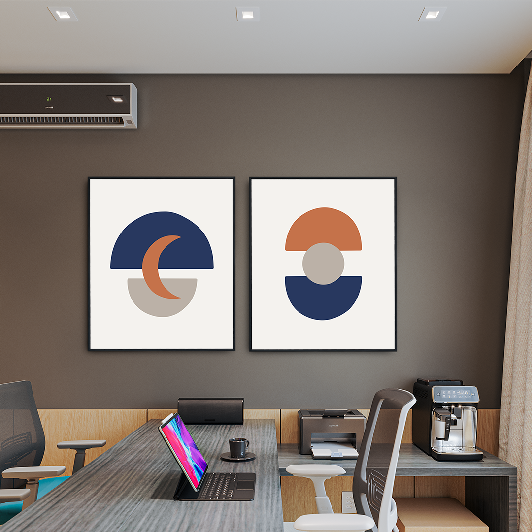 Código: GEO-0008-Conjunto-com-2-quadros-FineArt-Abstrato-Geometria-Solar-e-Lunar